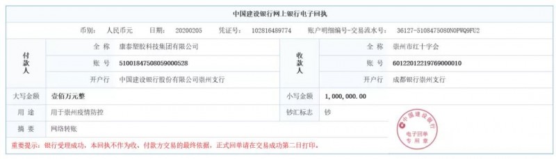 2008年5月12日,汶川特大地震災(zāi)害發(fā)生后,康泰積極捐款捐物,先后向汶川第一中學(xué)、都江堰一中、雁門(mén)小學(xué)、雁門(mén)安置房、映秀大壩水站、綿竹市板房區(qū)以及什邡市新農(nóng)村建設(shè)等地震災(zāi)區(qū)捐款、捐物達(dá)300余萬(wàn)元。2020年1月,一場(chǎng)突如其來(lái)的新型冠狀病毒肺炎疫情肆虐中華大地??堤┞氏软憫?yīng)社會(huì)號(hào)召,第一時(shí)間向崇州市紅十字會(huì)捐款100萬(wàn)元,專(zhuān)門(mén)用于疫情防控工作,彰顯了大愛(ài)無(wú)疆的新時(shí)代企業(yè)精神。