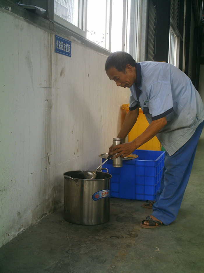??? 炎炎夏日,辛勤的員工們依舊堅(jiān)守在工作崗位。這時(shí),一杯綠豆湯能為他們清熱消暑,解除高溫帶給身體的疲憊。2013年8月22日,在管件車間,記者見到員工鄧火全正在舀綠豆湯,并向他了解夏季公司為員工準(zhǔn)備綠豆湯的具體情況。